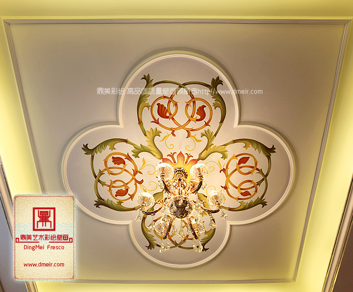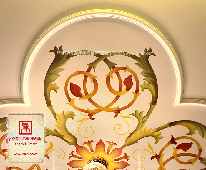 这些纹路如同鲜花与绿叶般的缠绕在吊灯周围、飞舞在天花板上。