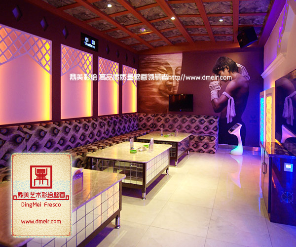 唛田KTV主题店位于合肥,为环球主题风格,在全球6大洲范围内,选择建造60个具有代表性的文化特色国家主题包厢,使其拥有独特惊艳的视唱体验。作为安徽省首家以艺术彩绘为主题的环球风格KTV,在出色的音响效果和高档的整体装修下,更有来自我们鼎美艺术专业绘画设计团队的精美主题彩绘。